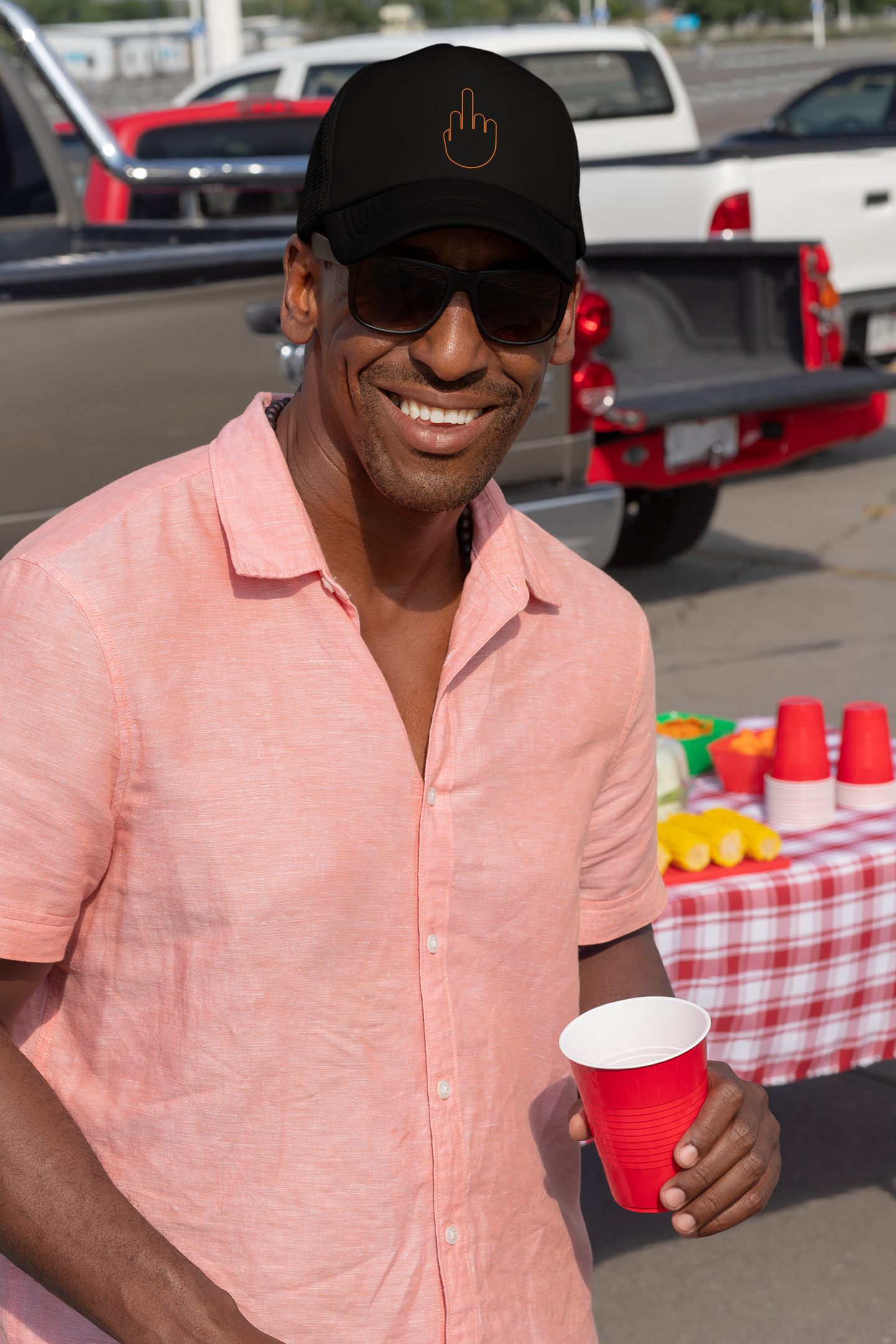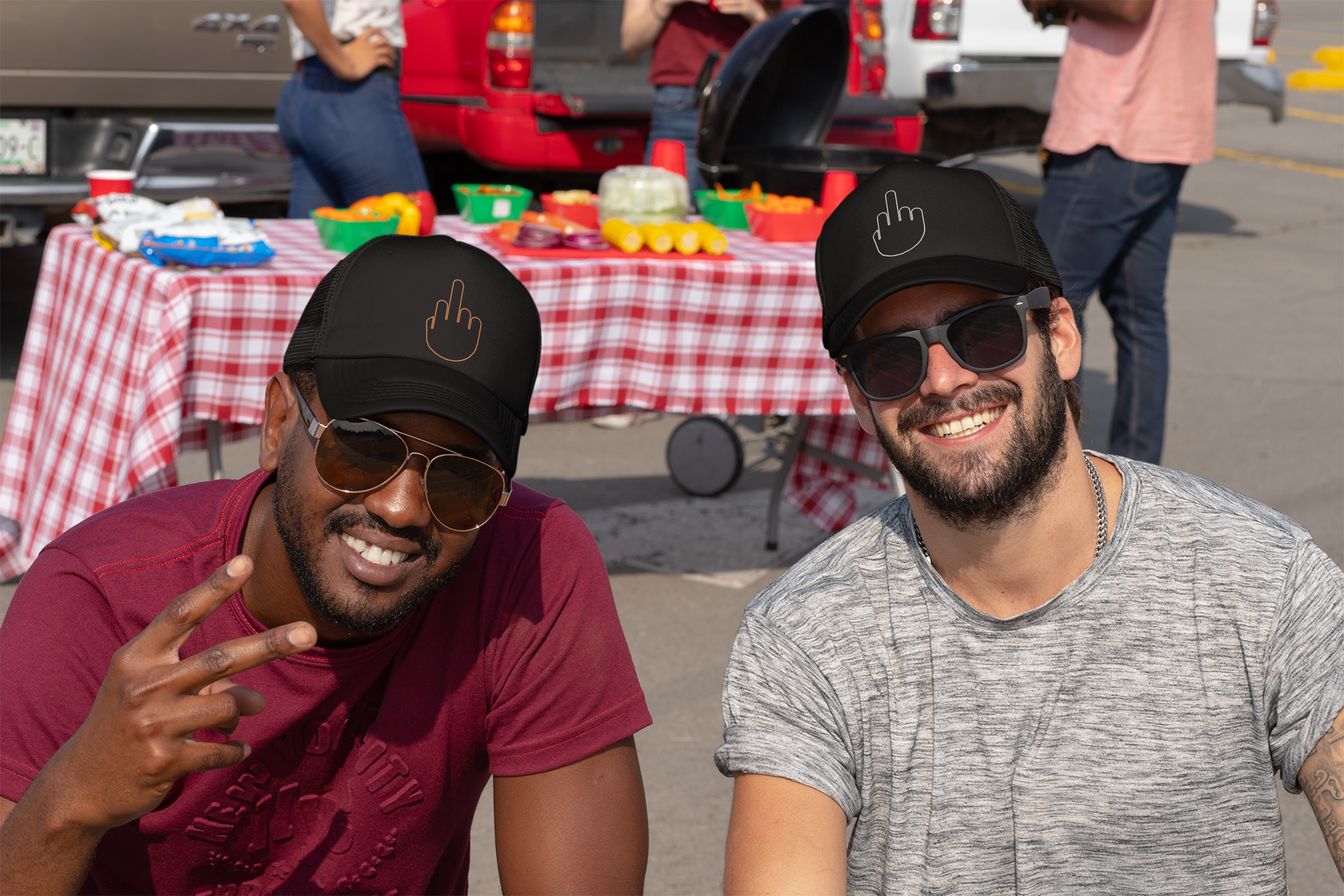 Unleash your wild side with with this bold foam trucker hat featuring a rebellious hand flipping of the world.